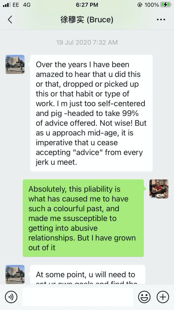 That day he doubled down on his claims about my songs and my master’s. One monologue, in which he wore a self-satisfied grin, displaying the confidence of a professional who worked with governments and NGOs, ended with the clear statement that if I continued on the creative path I was on “you’re a loser”.
